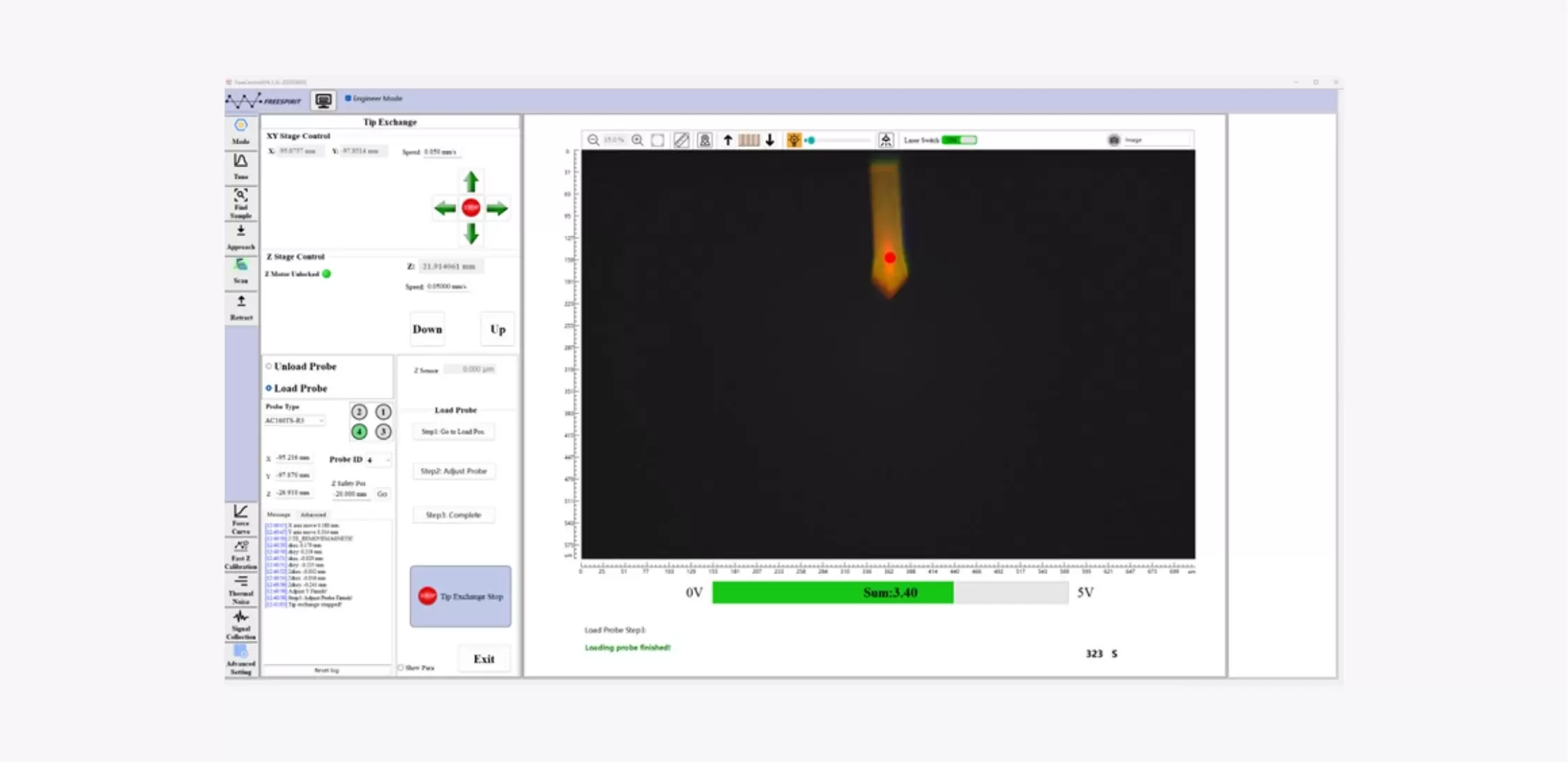 AFM-Tenor utilizes machine vision-assisted magnetic control and clutch motor adjustment technology to achieve fully automated probe loading/unloading and laser alignment.