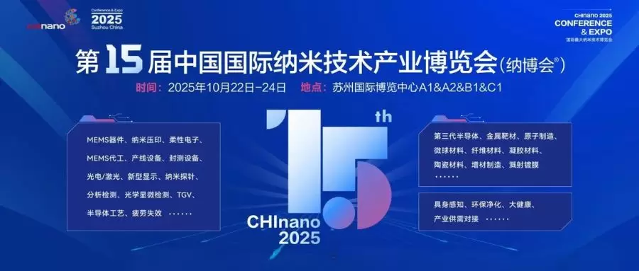 The 15th CHInano Conference & Expo (CHInano 2025) will be held in Suzhou from October 22 to 24, 2025.