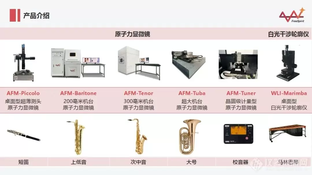 Nowadays, FreeSpirit Instruments’ product line has begun to take shape. Entering the product world of FreeSpirit Instruments, you will encounter a romantic symphony of science and art - its AFM and WLI products are both named after musical instruments. “In English, both ‘scientific instrument’ and ‘musical instrument’ are translated as ‘instrument’,” Sen Wu explained with a smile, revealing the naming inspiration. AFM‑Baritone (named after the baritone voice, which lies between tenor and bass) symbolizes robust performance and features a 200 mm automated sample stage capable of handling 8‑inch wafers. AFM‑Piccolo (named after the piccolo, a small high‑pitched woodwind) uses a 7 mm ultra‑thin probe, enabling in‑situ integration with optical‑microscopy systems—light and precise like the instrument itself. WLI‑Marimba (named after the marimba, a percussion instrument similar to a xylophone) can be coaxially linked with the Piccolo system, delivering a synergy of large‑scale rapid scanning and micro‑area high‑resolution imaging.
